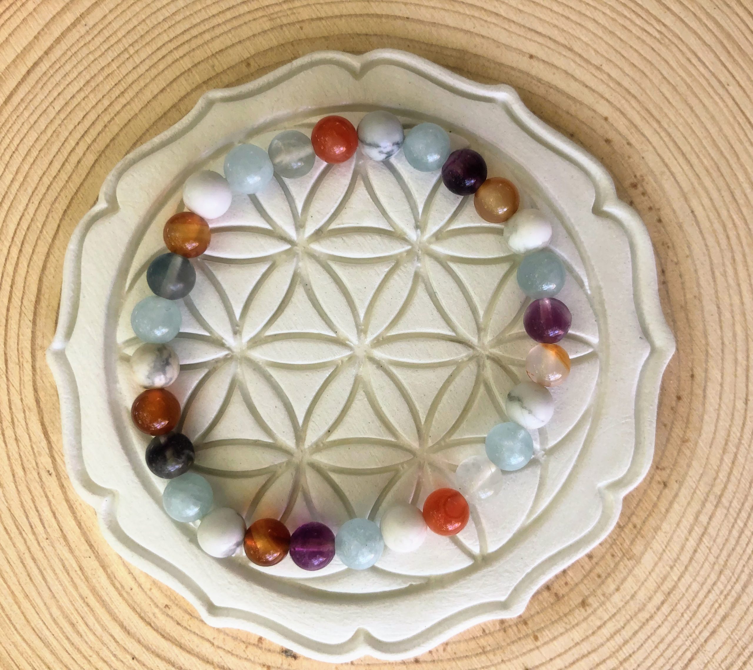 La géométrie sacrée de la Fleur de Vie aide à rétablir l’équilibre intérieur et à harmoniser les énergies environnantes. Vous pourrez nettoyer et recharger vos pierres tout simplement en les laissant poser dessus et harmoniser votre espace ou votre eau. Mes créations allient esthétisme et bien-être. En intégrant le symbole de la Fleur de Vie dans votre vie quotidienne, vous invitez des énergies positives et bienfaisantes qui contribuent à votre bien-être global.
