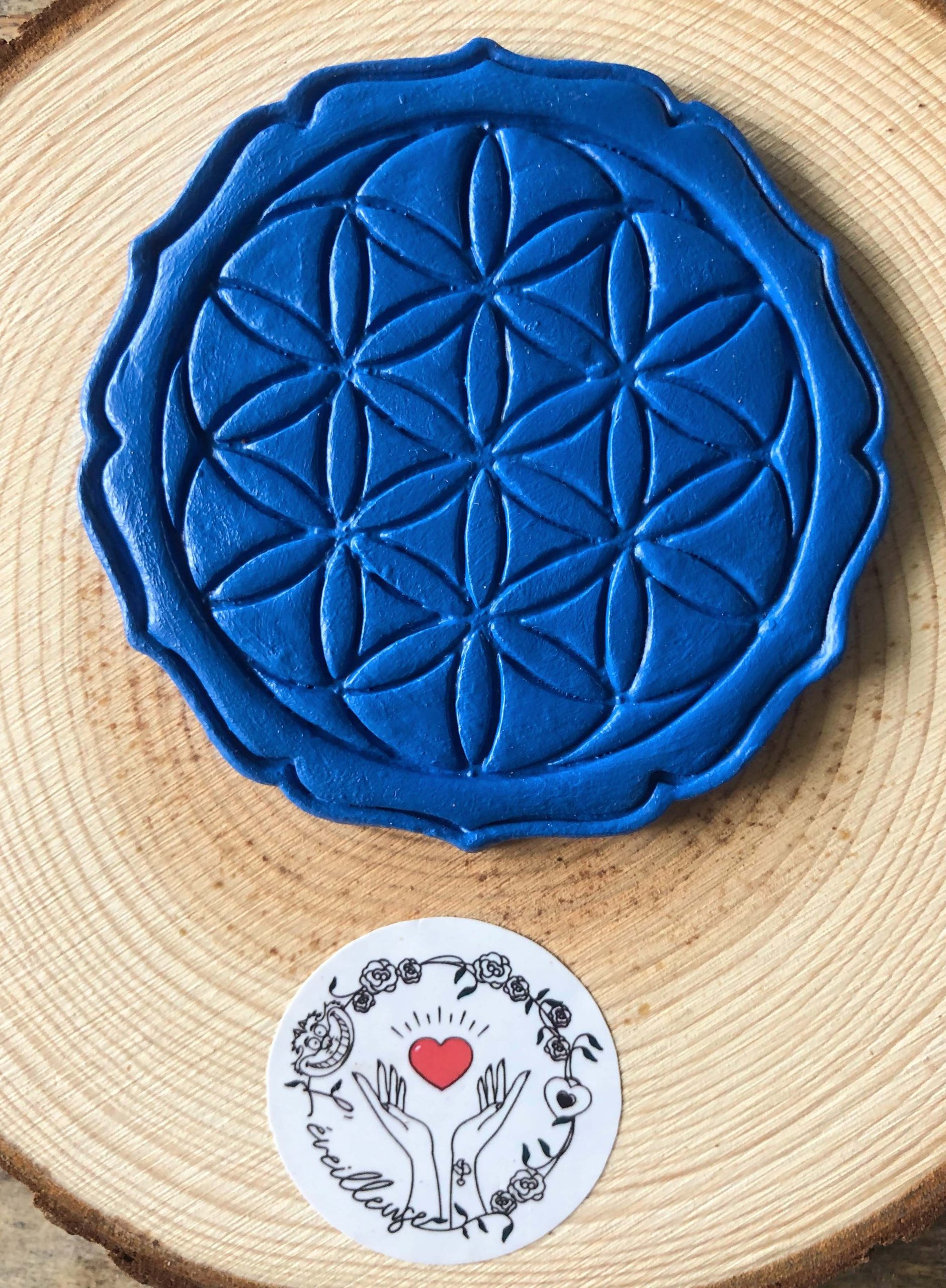 Fleur de Vie bleu majorelle en argile.