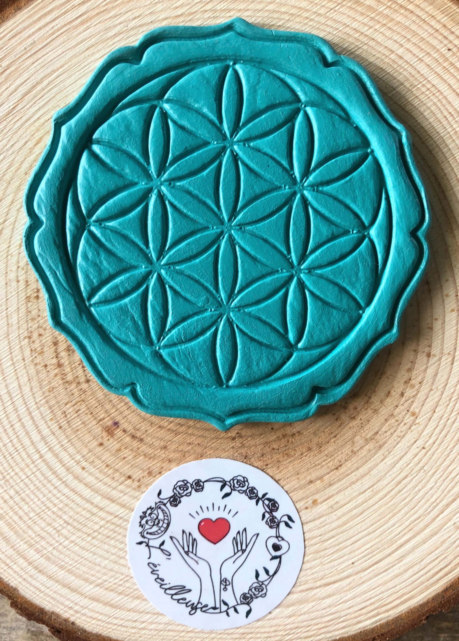 La géométrie sacrée de la Fleur de Vie aide à rétablir l’équilibre intérieur et à harmoniser les énergies environnantes. Vous pourrez nettoyer et recharger vos pierres tout simplement en les laissant poser dessus et harmoniser votre espace ou votre eau. Mes créations allient esthétisme et bien-être. En intégrant le symbole de la Fleur de Vie dans votre vie quotidienne, vous invitez des énergies positives et bienfaisantes qui contribuent à votre bien-être global.